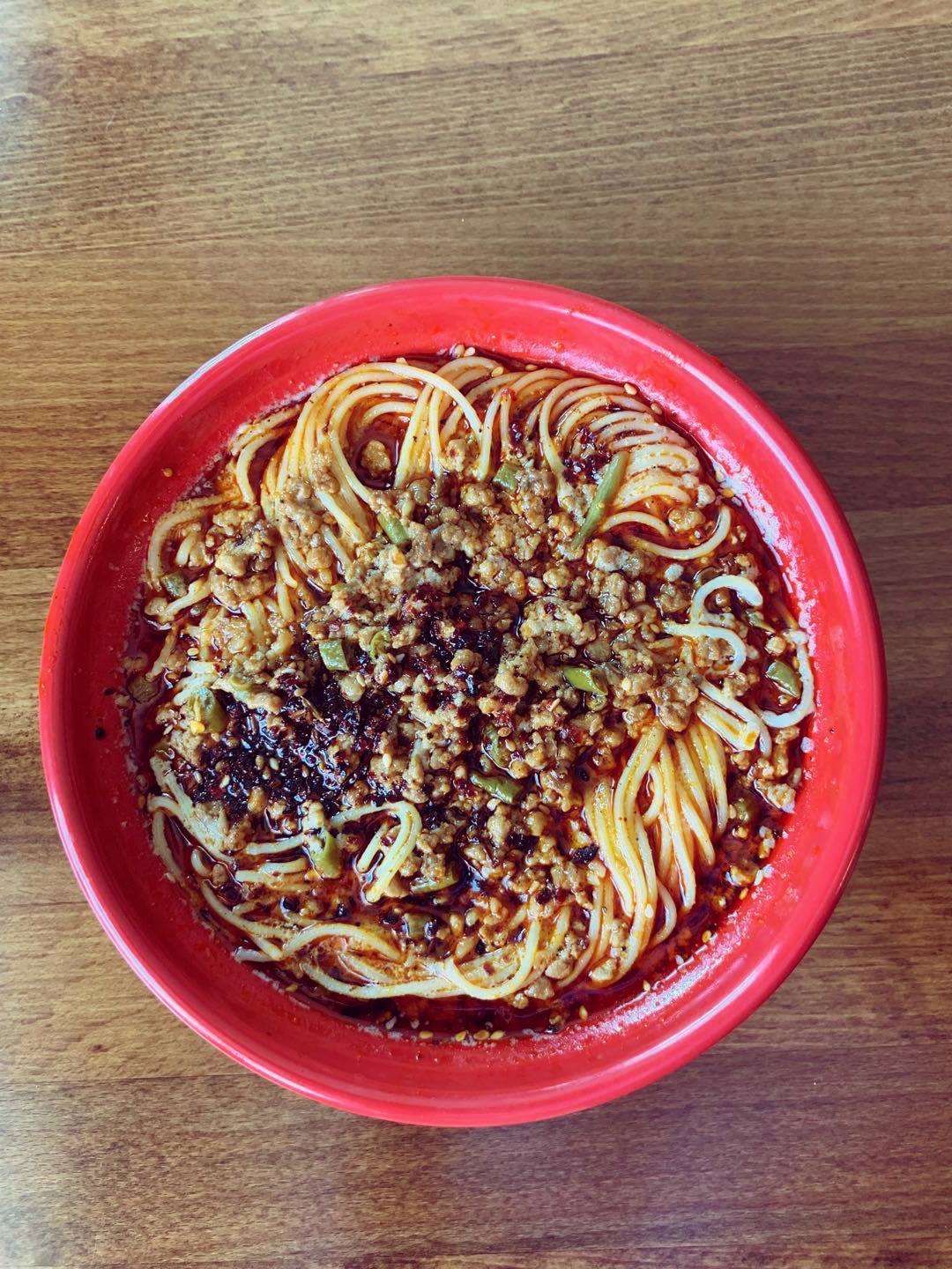 描述:鸡蛋面搭配肉末、豆角碎、芝麻酱和特制蒜香酱。