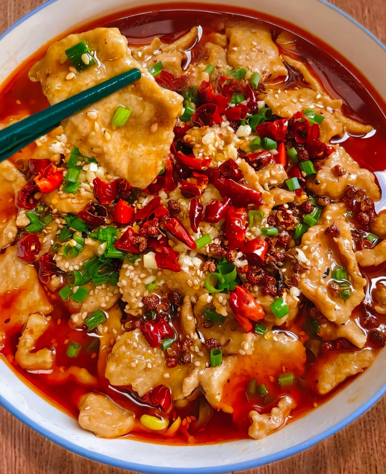 A classic Sichuan dish featuring tender slices of pork poached in a rich, spicy broth infused with chili oil, Sichuan peppercorns, garlic, and a house-made seasoning blend. The meat is incredibly soft, coated in a fragrant, numbing-spicy "mala" sauce, and served over a bed of crisp vegetables. Bold, aromatic, and full of flavor —— a must-order for anyone who loves authentic Sichuan cuisine.